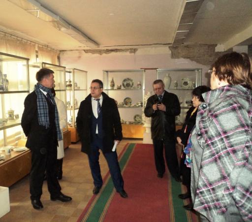 Е.Е.Вожакин посетил бывший музей завода, где собраны образцы продукции, выпускавшейся предприятием за всю его историю. Вопреки распространенному мнению, музей цел и даже имеет вполне презентабельный (по сравнению с цехами завода) вид. Но большая часть наиболее ценных образцов фаянса, в том числе авторские работы известных художников-живописцев и керамистов, в свое время были проданы, и по некоторым данным, теперь они «всплывают» даже за границей. Побывал министр и в помещении бывшей художественной лаборатории. Там силами В.В.Солонбекова сохранено кустарное производство сувенирной и уникальной фаянсовой продукции. Е.Е.Вожакин поинтересовался тем, какие трудности испытывают работники, и в качестве посильной помощи предложил использовать возможности государственной программы по поддержке народных промыслов, обещав со стороны областного правительства всяческое содействие. В ответ художники подарили министру несколько изделий, а главе района Л.А.Козловой – символический рог изобилия из фаянса. Лучшего пожелания и придумать нельзя.