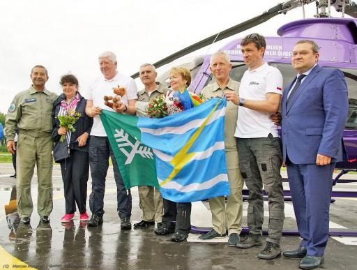 На земле, с замиранием сердца и искренней радостью и гордостью, экипаж встречали и приветствовали Глава администрации Конаковского района Олег Лобановский, заместитель Главы администрации Конаковского района по социальной политике Аггюль Бородина, заведующий отделом молодежной политики, культуры и спорта Александра Федотова, московские пилоты-вертолетчики, близкие и родные, друзья и товарищи и гости. А воспитанницы ДК «Современник» приветствовали экипаж зажигательным танцем.