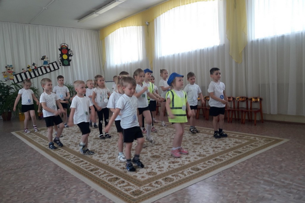 В физкультурном досуге по ПДД, команды старшей группы «Пешеходы» и «Светофор» соревновались между собой в знаниях дорожных знаков, правилах для велосипедистов и помогали Незнайке выучить их, а средняя группа активно поддерживала участников. Конкурсы с жезлом, светофором, светоотражателями под музыкальное сопровождение понравились ребятам. Инспектор рассказала ребятам о службе ГИБДД и повторила самые важные правила безопасности для пешеходов и пассажиров.