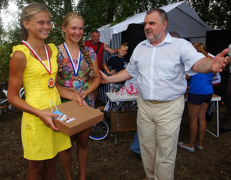 Детская велогонка: мальчики до 6 лет – М. Кононов, 7-10 лет – К. Косарев, 11015 лет – Н. Леонов, старше 16 лет – Е. Муравьев; девочки до 6 лет – В. Лебедева, 7-10 лет – Д. Рязанова. 11-15 лет – В. Константинова, старше 16 лет – Е. Мельникова.